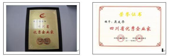 2011年4月,四川省企业联合会和四川省企业家协会联合授予公司董事长吴友华先生为四川省优秀企业家称号。(人事行政部/杨洪金)